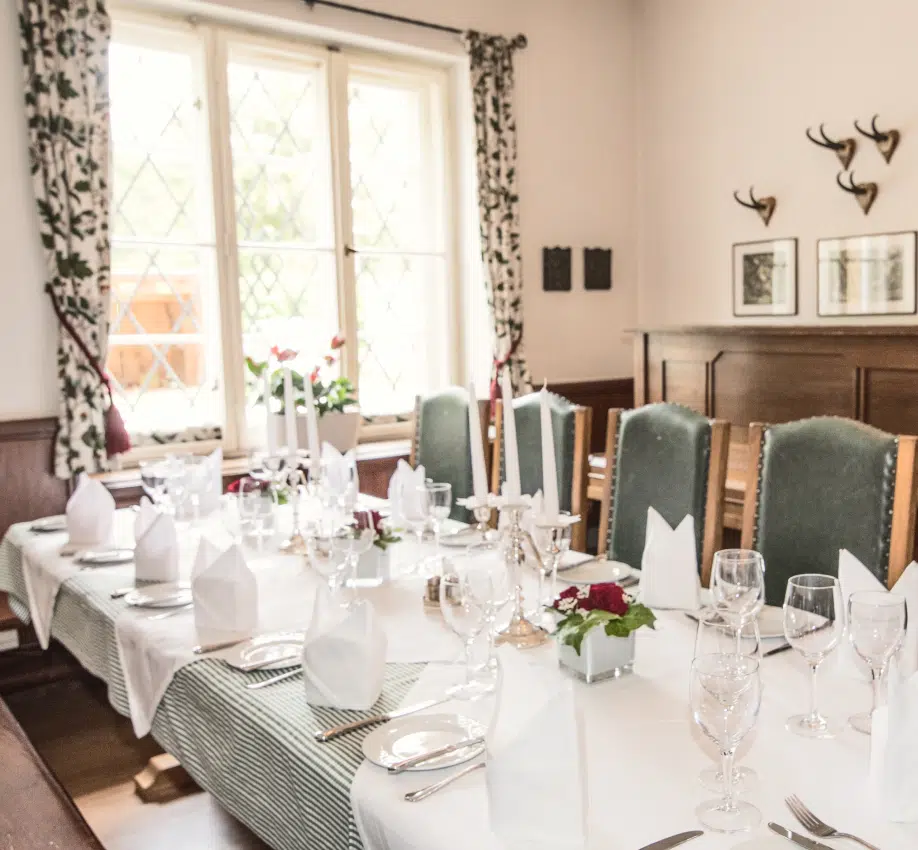 Besondere Orte des Zusammenseins. Unsere Stuben und Salons schaffen mit ihrem ursprünglich erhaltenen Ambiente ein charmantes Setting für feierliche Anlässe. Ob Feiern im großen Stil oder Feste im kleineren Kreis, hier erwarten Sie Räume voller Stil und Gemütlichkeit, wo Feierlichkeiten zu einem wahren Genuss werden.